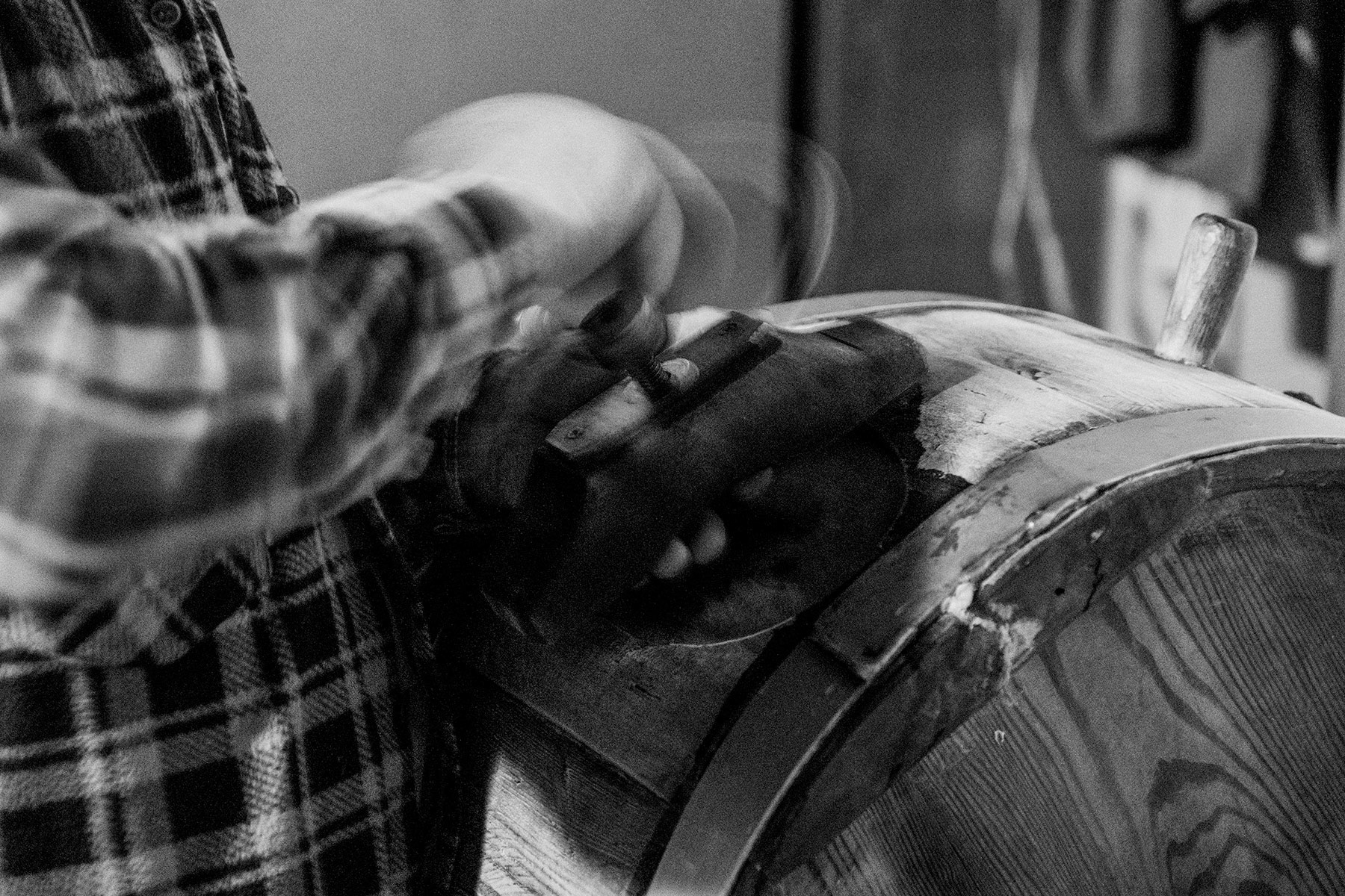 Once poured into the ‘Zangola’ (the wooden machine shown in the first pictures), the rotation mechanism is activated.